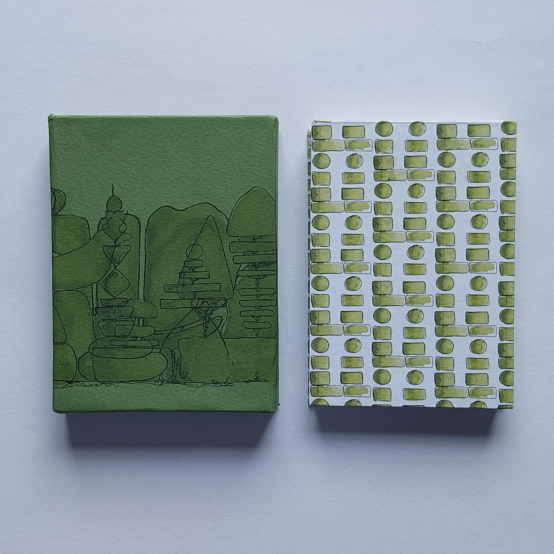 I love the process of creating a miniature world within a book, and they are often inspired by a journey or something I've seen. The books are printed or drawn, often with hand stitched covers. They are small treasures and made in very small quanities. You can see these at Book Fairs. Stay in touch via the Newsletter for more!